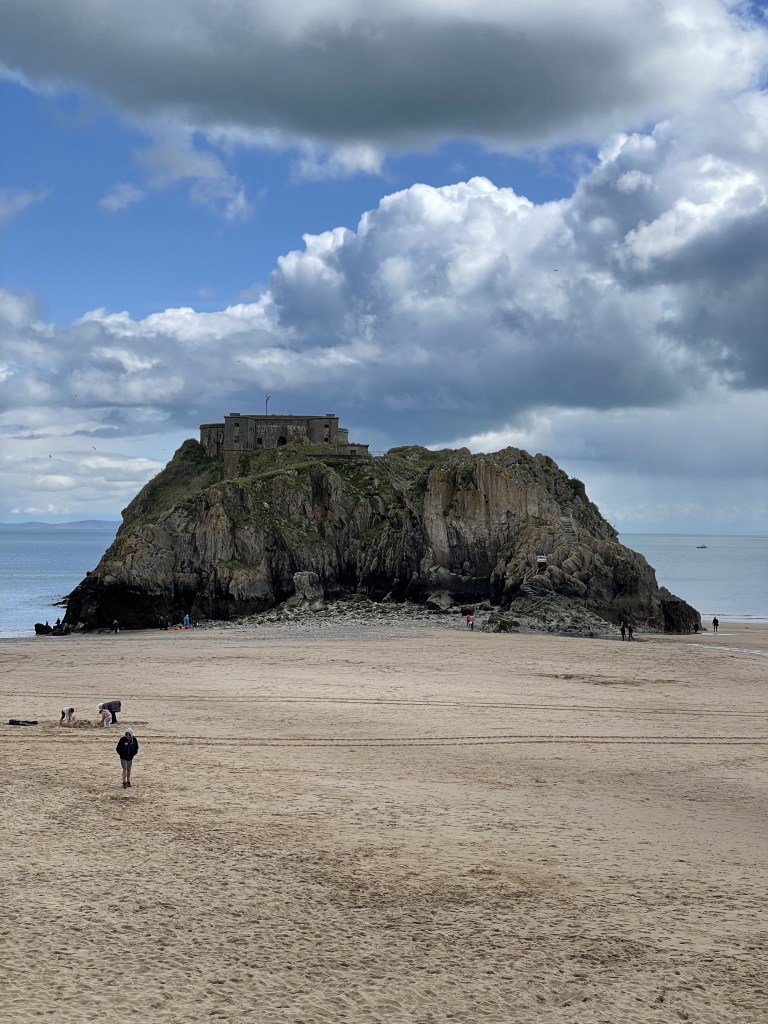 Tenby其中一個最著名的景點是座落於沙灘中的St. Catherine Island。在中午走在沙灘經過這個景點時,覺得很奇怪為什麼這景點叫Island(島)呢?明明在我的認知中,被稱為Island都是因為四面環海,只有船才能到達,要嘛就是要有海底隧道。但St. Catherine Island完全不符合這條件,在沙灘上很容易就能走過去,還有樓梯讓我到頂。